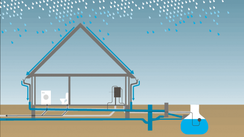 Nadmiar wody, gdy opady nie kończą się mimo przepełnienia zbiornika, wypuszczany jest drenami do ziemi, aby mimo wszystko odprowadzać wodę z rynien.